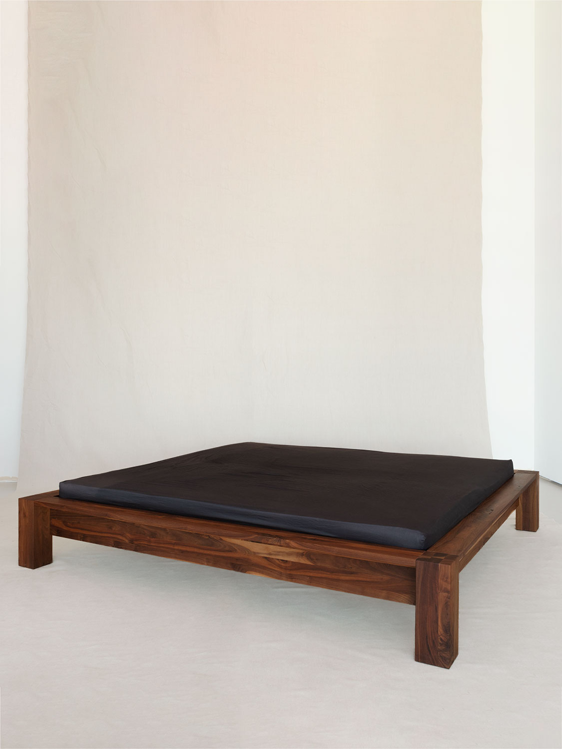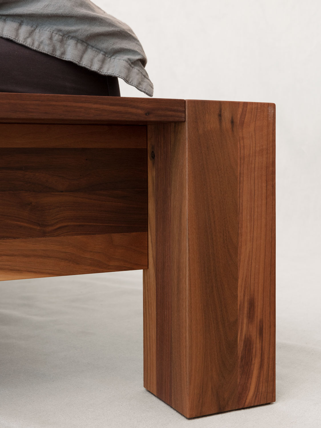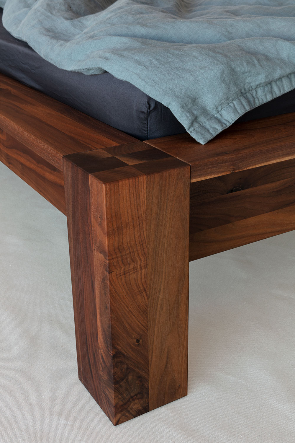 MassivholzbettObschon es mehrheitlich aus dünnen Elementen besteht, vertritt das Massivholzbett Terrei in unserer Kollektion doch das sogenannte «Balkenbett».