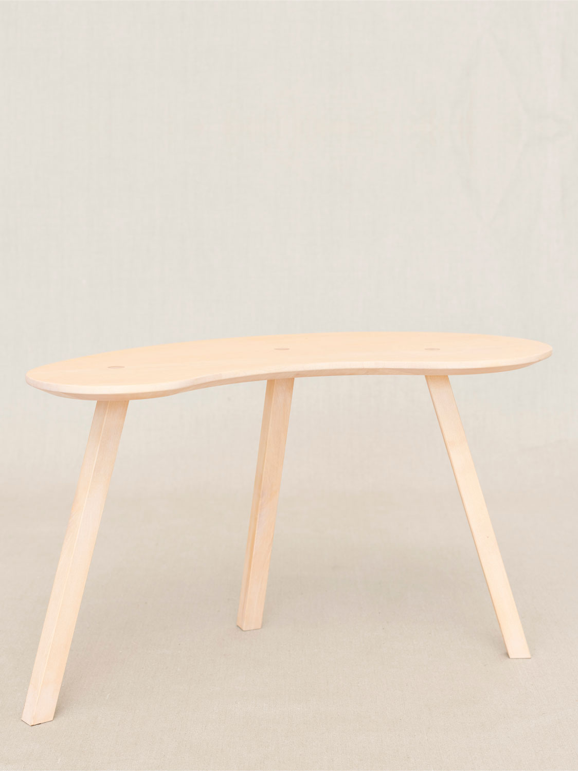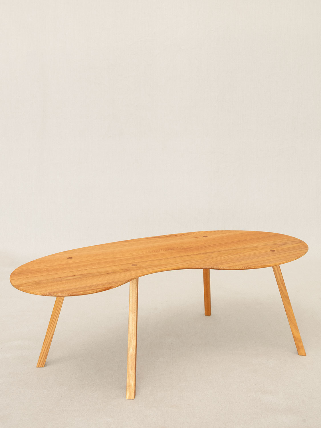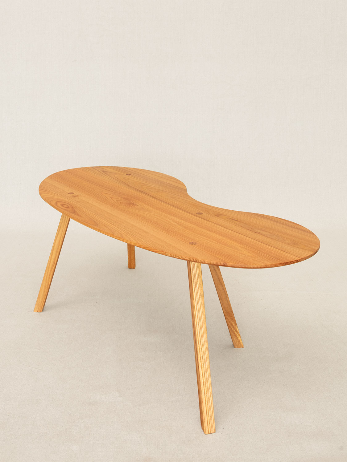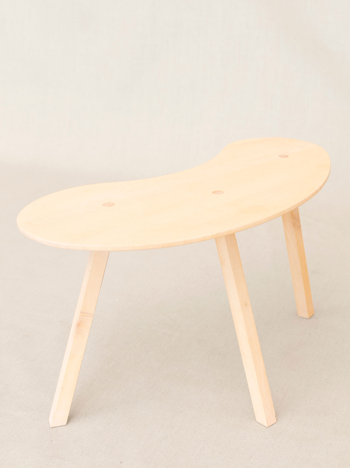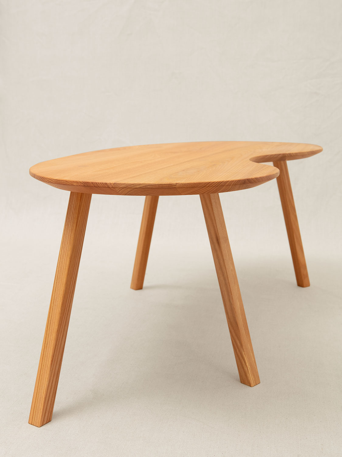 Der Beistelltisch aus Massivholz kann sowohl in rund als auch in vier – in Form und Grösse unterschiedlichen – Nierenformen konfiguriert werden.