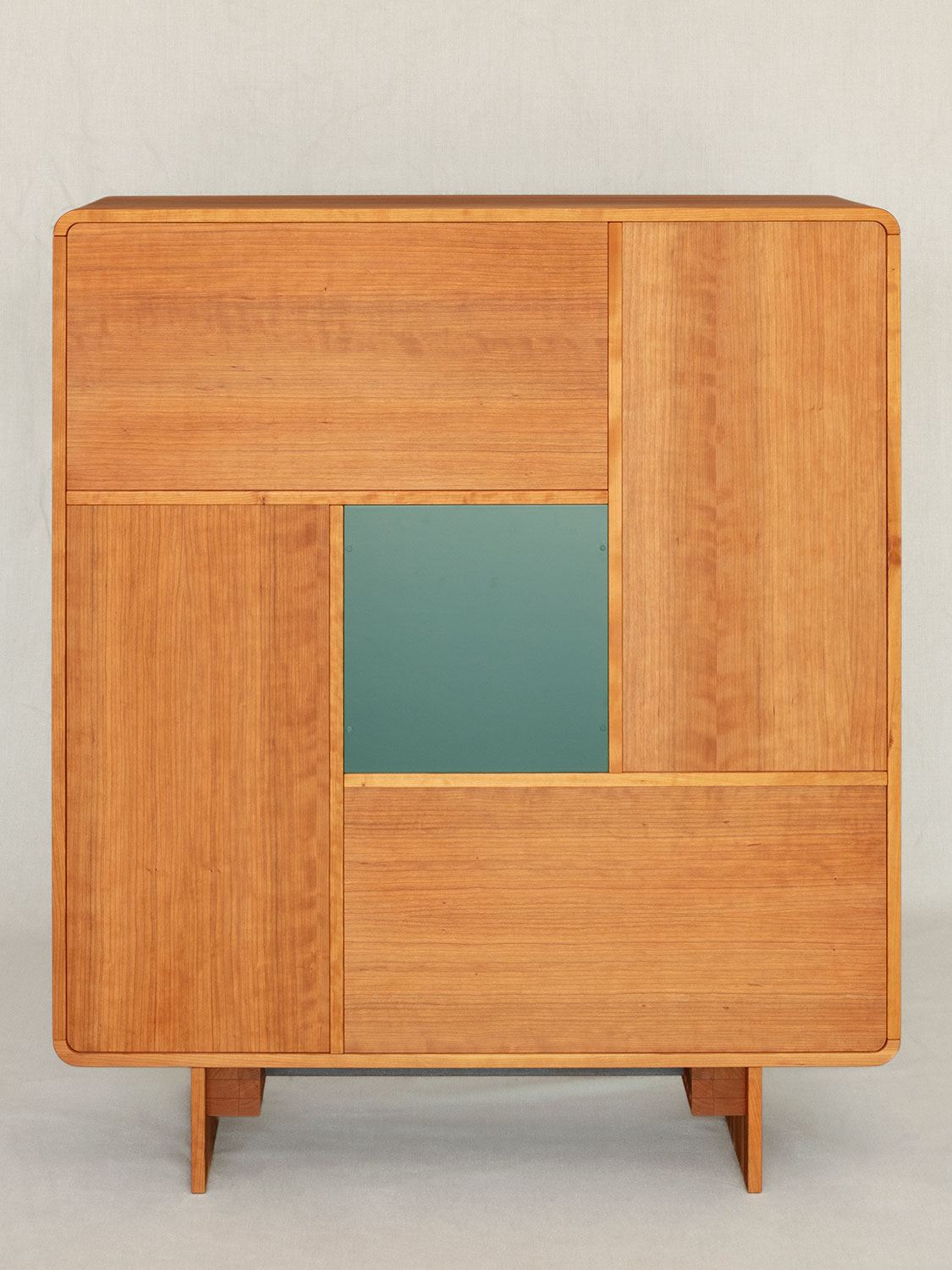 Da bei dieser Kommode das Mass jedes Elementes sich auf alle anderen stützt, ist es schwer, etwas daran zu verändern, ohne dass die einzelnen Fächer an Sinn verlieren, daher sind online nur kleine Details konfigurierbar.