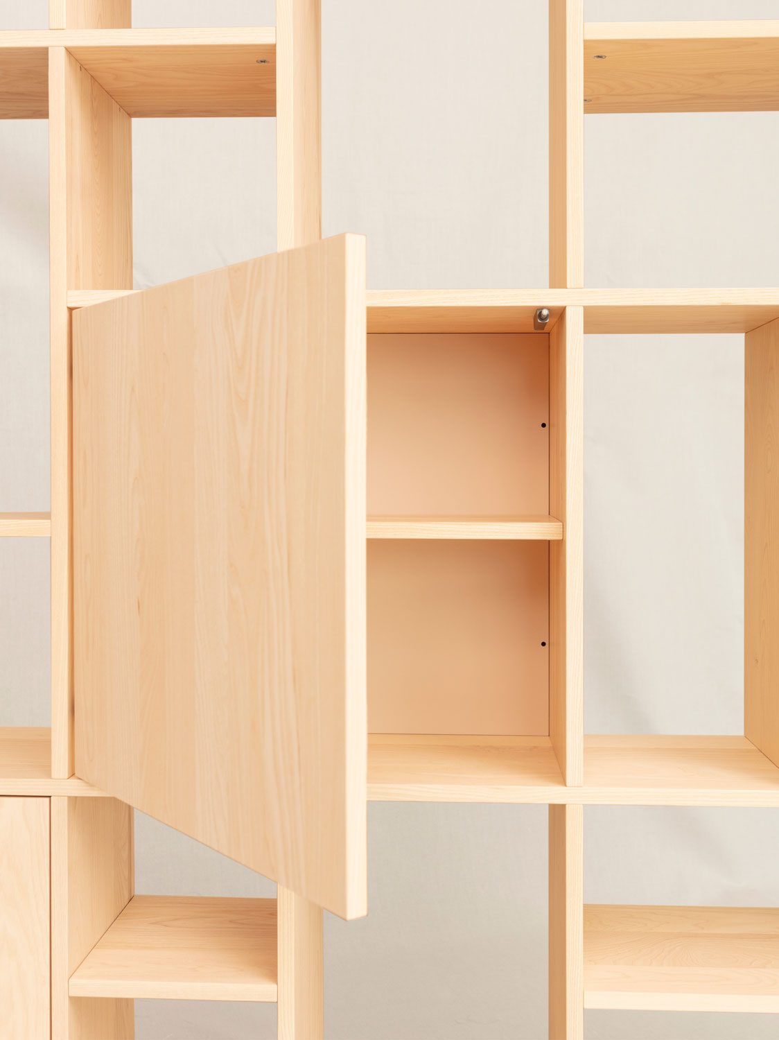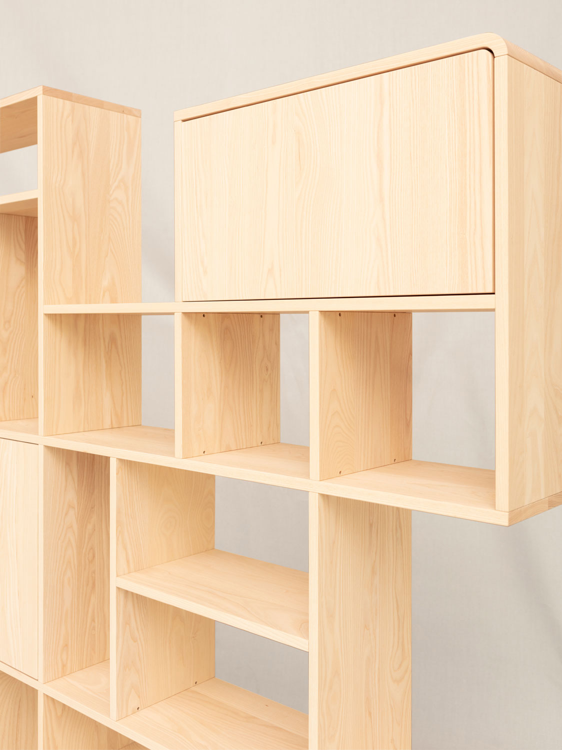 MassivholzregalEin Massivholzregal, dass die klassischen Grenzen des Rechteckes zu überwinden versucht und sich explosionsartig im Raum ausdehnt.