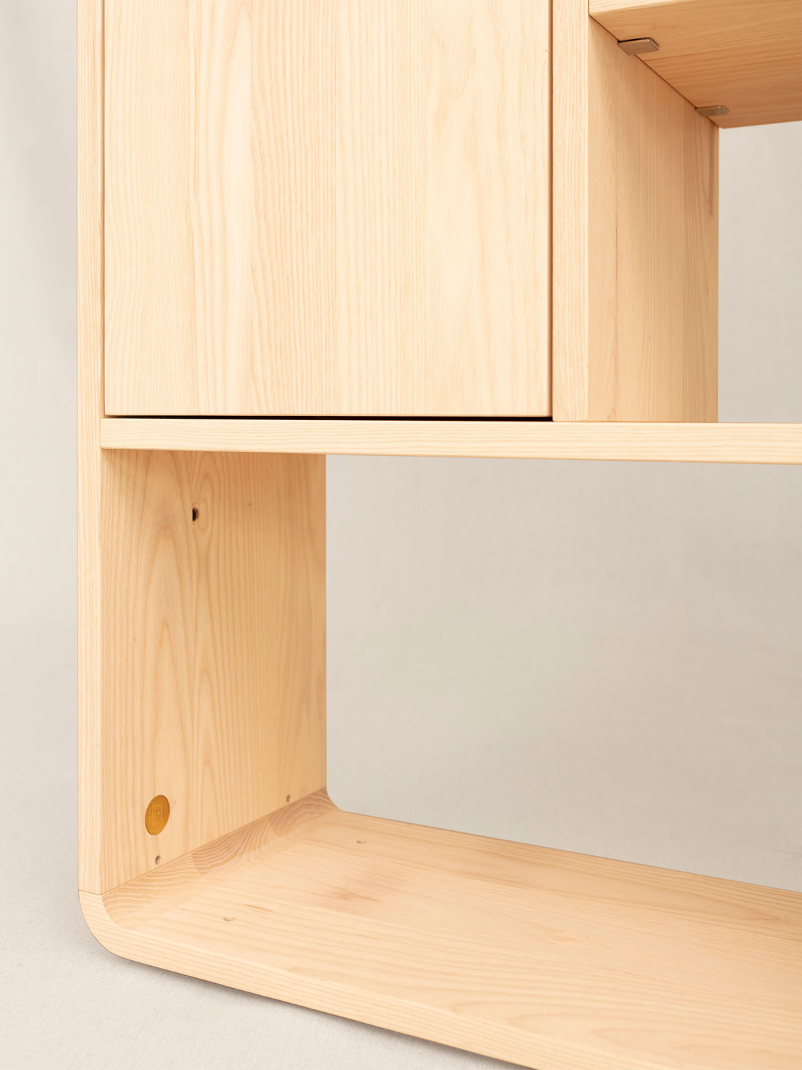 Das Regal «Explosion» will zeigen, dass unsere Massmöbel sich bei ihrer Konzeption auch nicht immer an die Grundform des Rechteckes halten müssen – der Fantasie sind wenig Grenzen gesetzt, ausser jene der Statik. Online kann das Massivholzregal in drei Breitenvarianten konfiguriert werden.