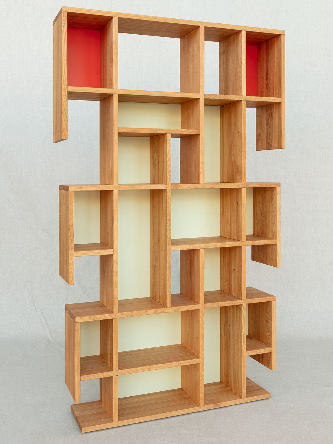 MassivholzregalDas Bücherregal, das dem Sumpf entstiegen ist. Ein etwas anderes Massivholzregal, das die Bücher clever vom umfallen bewahrt, ohne ohne flächig zu erscheinen.